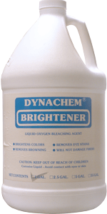 |  Fabric Brightener Gallon - $17.95 5 Gal.- $69.95 Dynachem's hi-strength liquid oxidizer for stain removal and dingy traffic lanes. Booster for adding stain removal to cleaners. Removes natural dyes & organic stains when used with high pH spotter. 40 volume peroxide strength + penetrants - ORM D |  DynaCide Deodorant Qt. - $15.49 1 Gal. - $47.95 Dilutes 8 oz. per Gallon DynaCide handles the toughest pet odors thru chemical pairing and neutralization. Unique Lemon Fresh Fragrance...Spray, Extract & it's Gone ! |