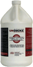 |  Gallon - $31.95    Case 4 - $30.95 ea. Microban Disinfectant Cln. Conc.is EPA registered Disinfectant, Fungicide & Virucide. It is used as a cleaner & mildewstat that also eliminates water damage odors. The lemon fragrance assures the customer. Disinfect @ 2 oz./ Gal. ; Sanitize @ 1/2 oz./Gal. |  Tabac-Attack Deodorant Spray Counteracts Tobacco Odors Pleasant Fragrance #UMTA $24.95 Case 4 - $23.95 ea. |  Gallon - $40.97    Case 4 - $39.95 Unsoot #1 Encapsulant is used to refinish air handling system duct work and ceiling plenums after fire, smoke damage, oil burner puffbacks. Unsoot #1 contains loose particulate,etc. Mixing: Dilute 1 part Unsoot #1 with 4 parts water and fog into ductwork. |  Gallon - $67.74    Case 4 - $66.49 ea. Surface Shield is used to refinish air handling system duct work and ceiling plenums to improve air quality. SurfaceShield contains an EPA registered antimicrobial agent (copper 8 quinolinolate) that protects the dried film from microbial attack. 500 sq.ft./Gal. - Suitable for Wood, Gypsum Board, Fiberglass, Plastic. |